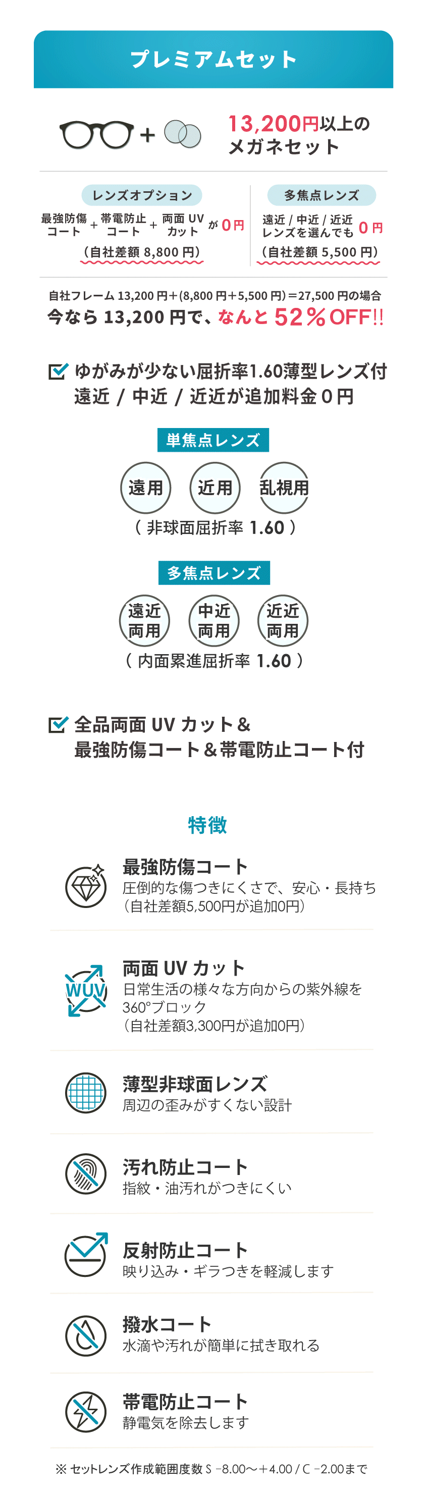 当店ではすべてのメガネセットに標準で搭載しています。