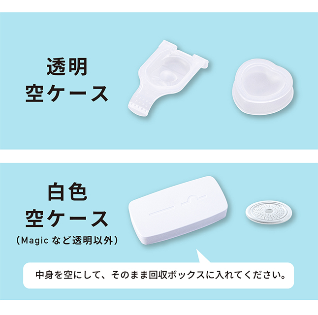 「白色空ケース(透明以外)」の投入口が分かれています。集めていただいたケースに合った投入口に入れてください。